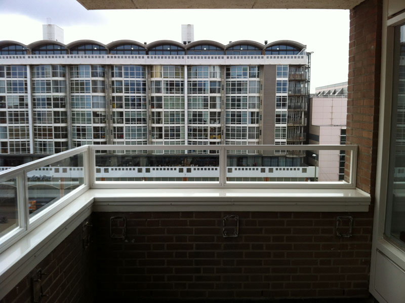 De windschermen worden van Jansen profiel gemaakt. In het profiel kan zowel mat als doorzichtig veiligheidsglas.