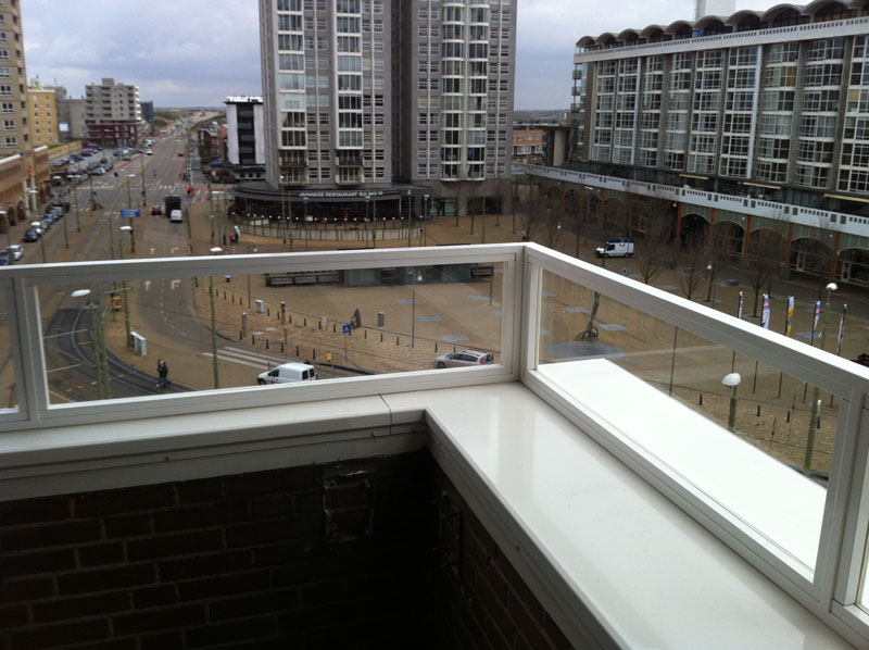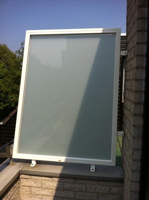De windschermen worden van Jansen profiel gemaakt. In het profiel kan zowel mat als doorzichtig veiligheidsglas.
